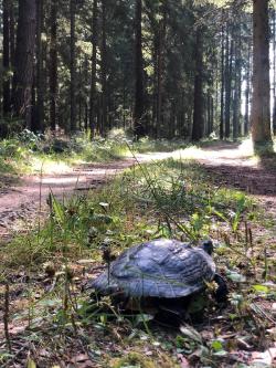 Po zabezpieczeniu żółw został przekazany do Wigierskiego Parku Narodowego.